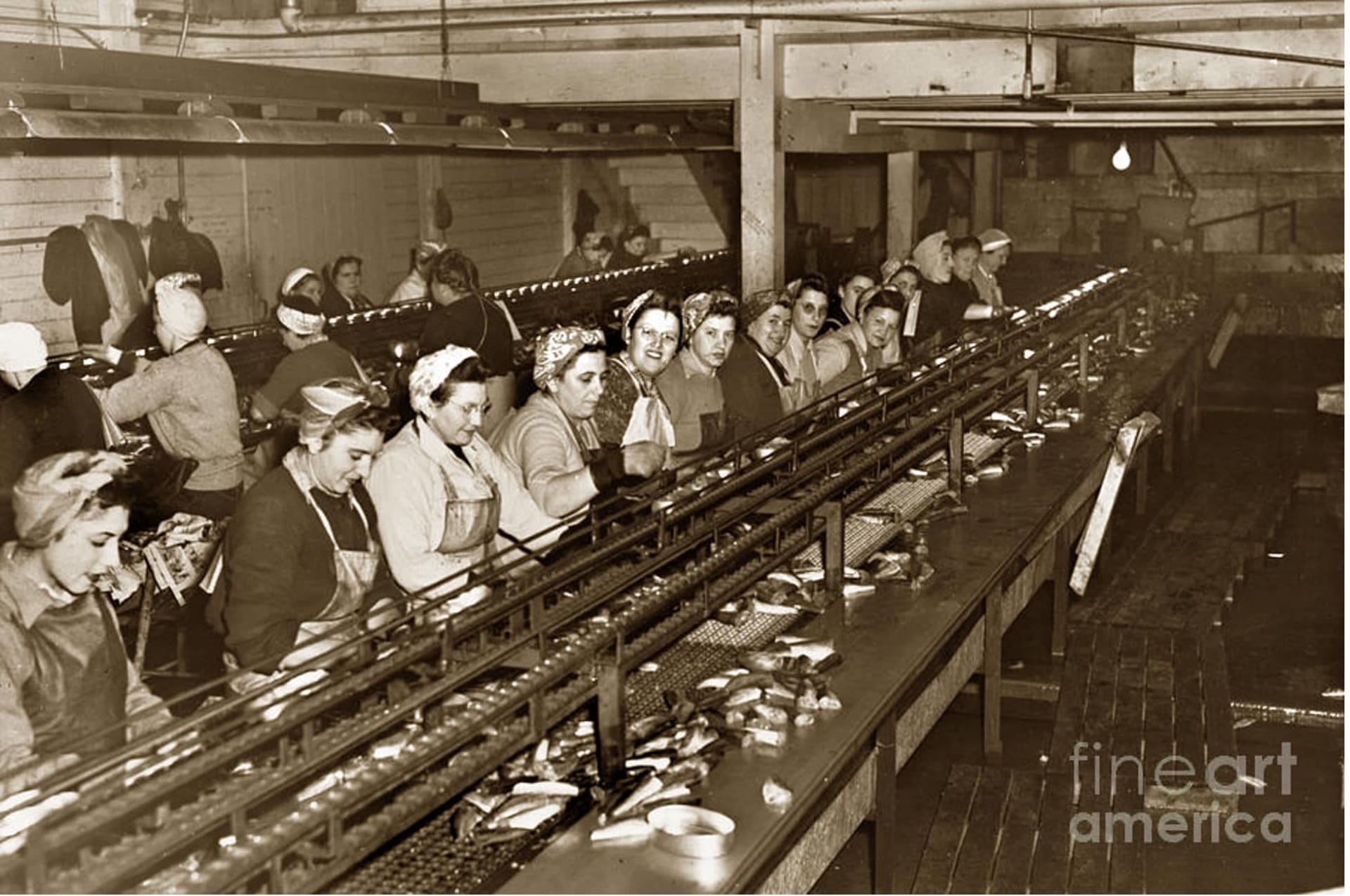Ladies packing Sardines in one pound oval cans in one of the over 20 Cannery's Circa 1948